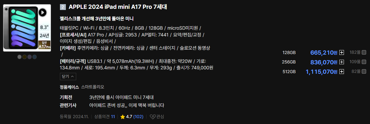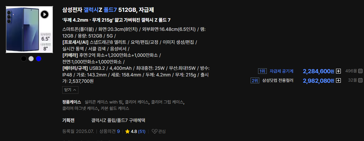 태블릿은 아니지만 굳이 8인치 고성능으로 따지면 폴드7