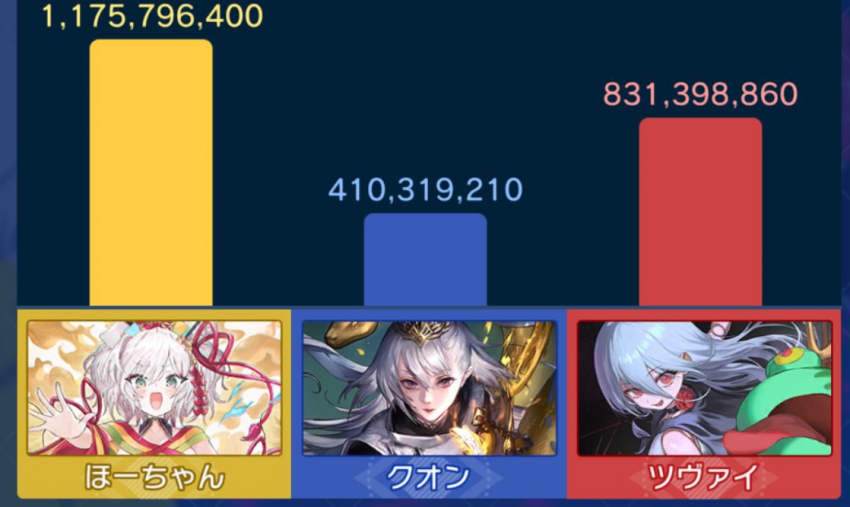 호짱팀(노랑)이 꼴찌팀 쿠온팀(파랑)과 7억점 차이로 앞서 나감