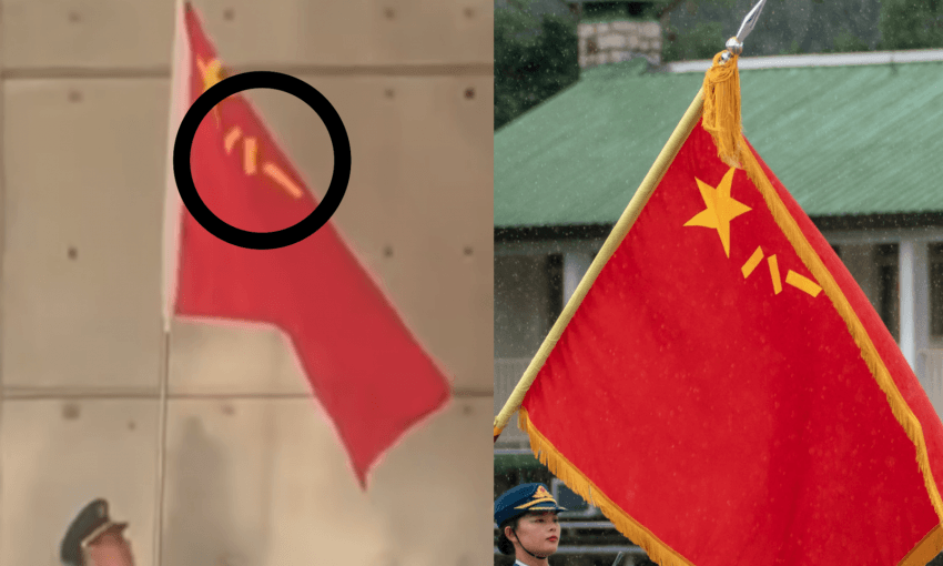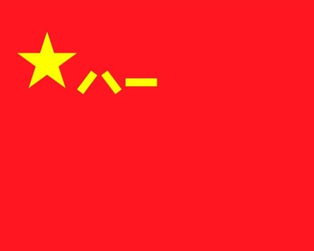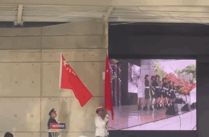 여기서 보면 일반적인 중국 국기 (오성홍기)와는 조금 다른 문양의 국기가 껴있는 것을 볼 수 있음