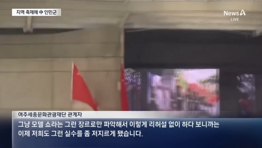 관련게시물 : 단독]전통 축제서 中군 행진 영상·오성홍기 ‘펄럭’…“미처 확인 못해”