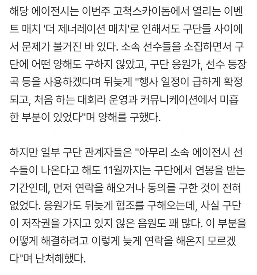 2. 연봉받는 11월에 각 팀에 허가도 안받고 계약기간중인 선수들 끌어다 이벤트매치 ㅋㅋㅋㅋㅋ