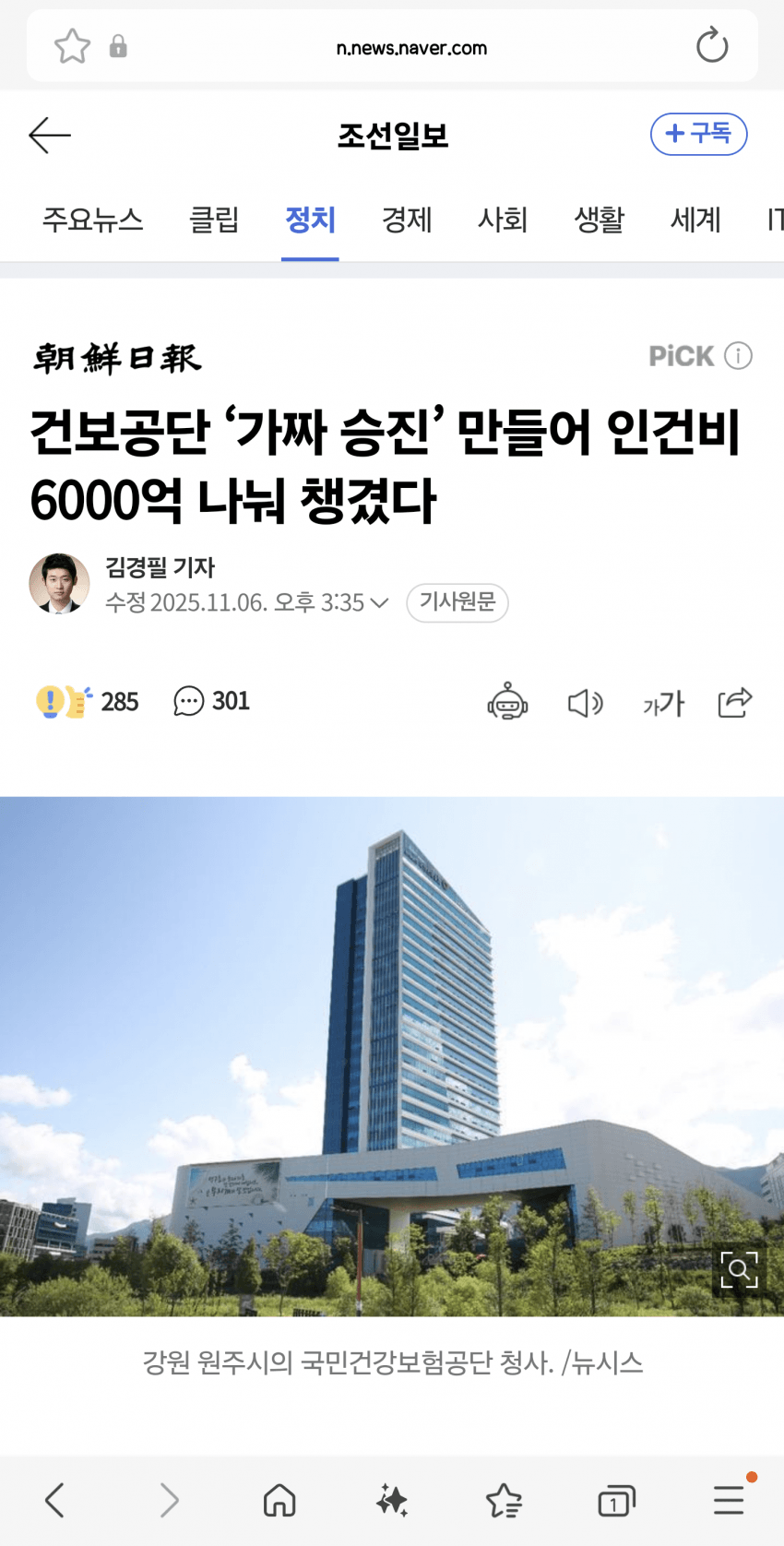 건보공단 6000억 슈킹ㅋㅋㅋ