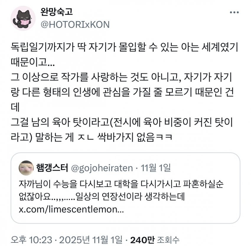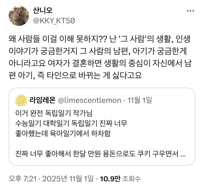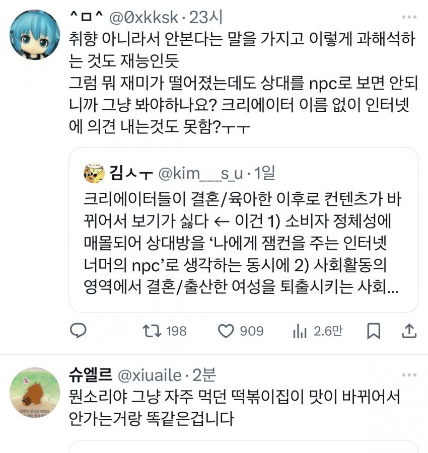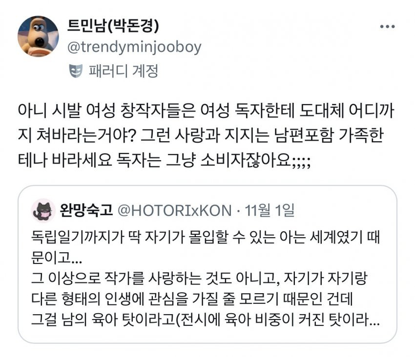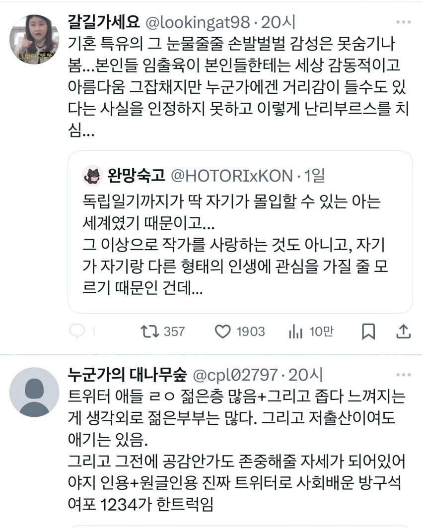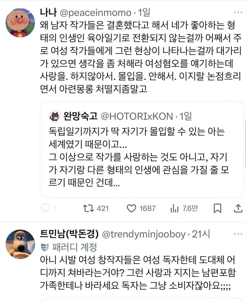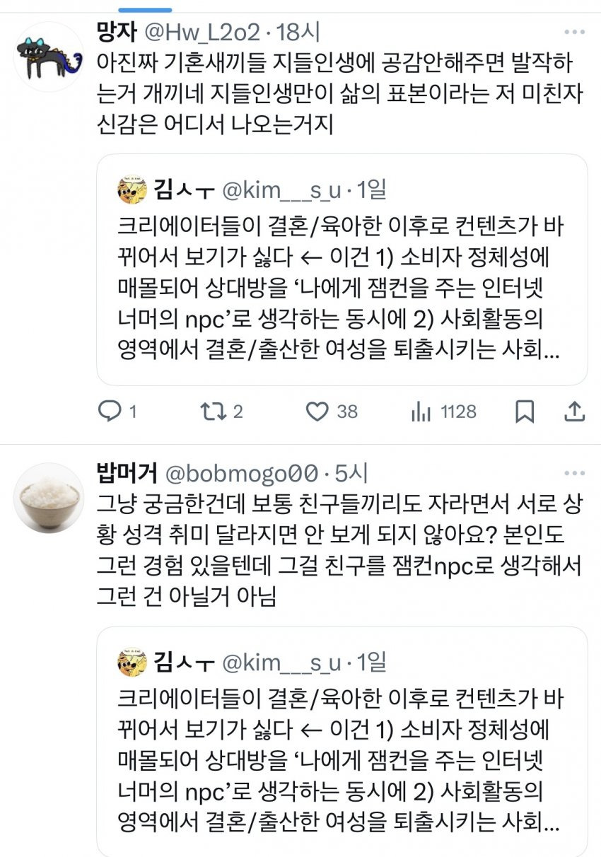 여성창작자들의 결혼후 육아컨텐츠를 보기 싫어하는 것은 여혐일까