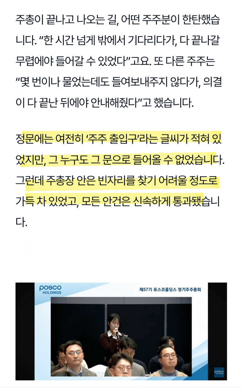 물적분할을 다루는 중요한 주총이었는데 건물앞에 경비세우고, 다른 건물로 잘못 안내하고 이런식으로 주주들 못들어가게 막음