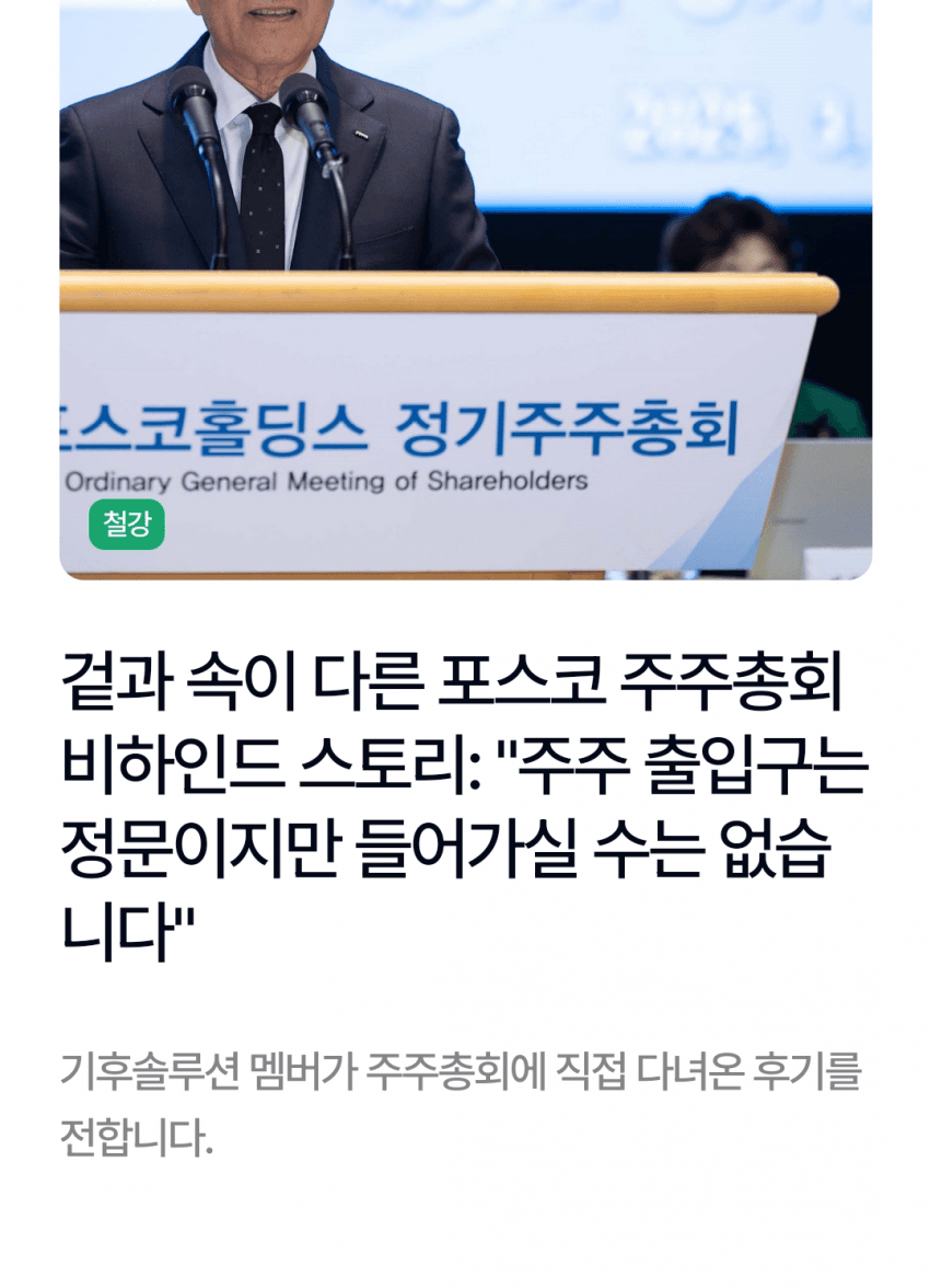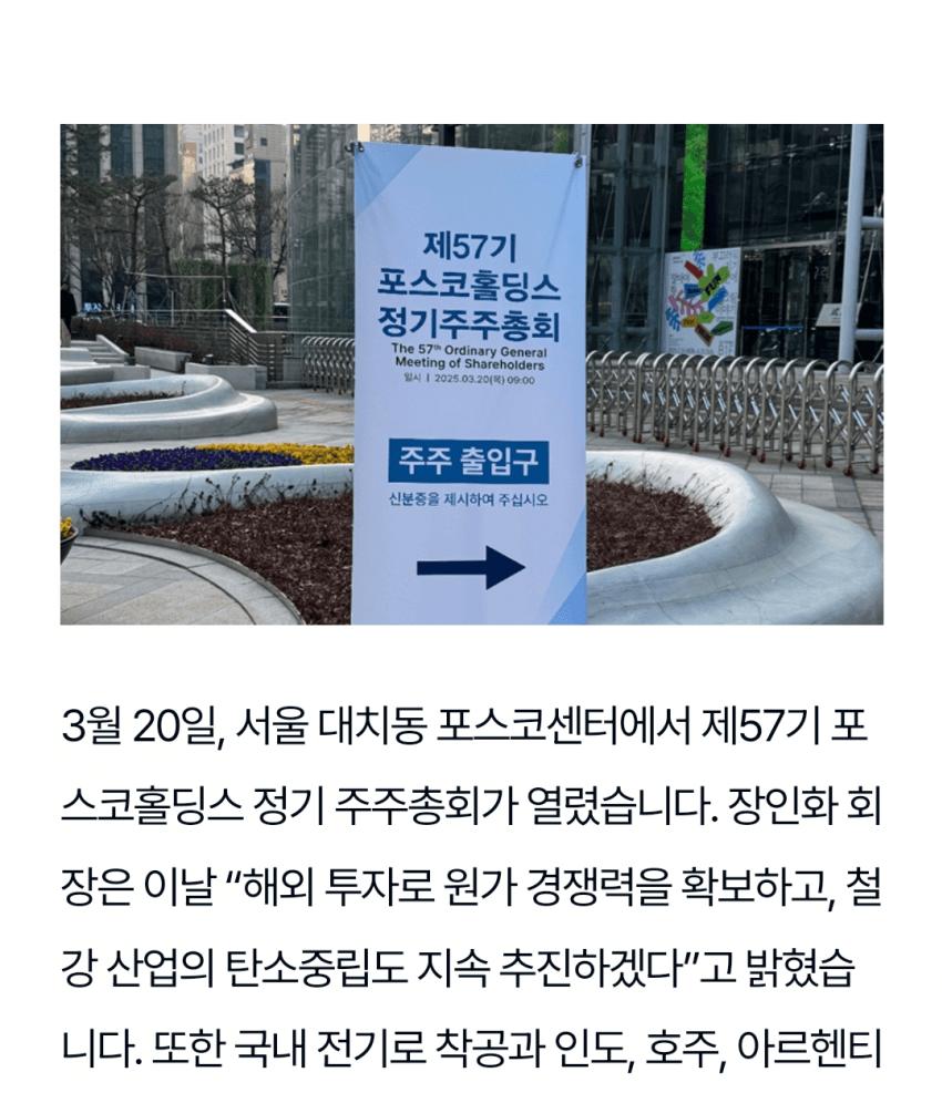> 포스코 제 57회 주주총회는 금년 3월에 열렸던 주총임