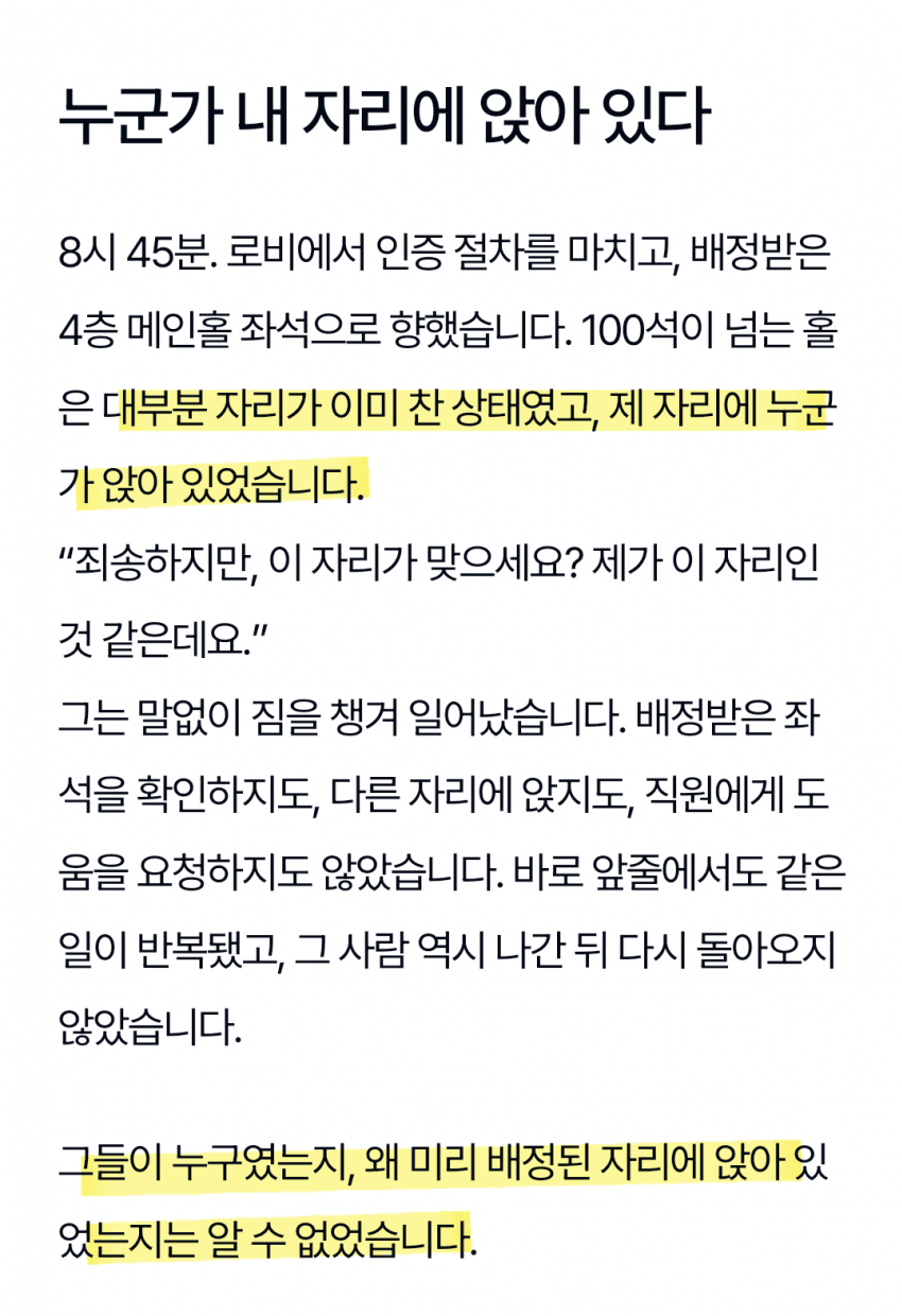 주총장 입장하니 배정된 자리에 모르는 사람이 앉아있음